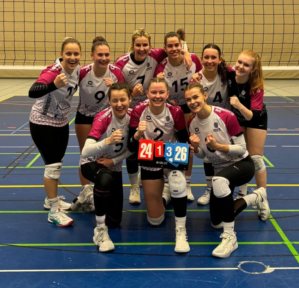 Nach diesem holprigen Start in das wichtige Spiel musste Luisa Papritz ran, die zuvor lange krankheitsbedingt ausgefallen war und entsprechend mit Trainingsrückstand zu kämpfen hatte. Sie legte jedoch eindrucksvoll los und brachte sofort Sicherheit in das Spiel der Volleys. Beim Stand von 15:8 hatte Papritz bereits sechs Punkte auf ihrem Konto. Dennoch blieb die Partie eine Achterbahnfahrt: Trotz einer komfortablen 21:14-Führung gelang es den Volleys nicht, den Angriffsdruck aufrechtzuerhalten. Punkt für Punkt gaben sie ab, bis die Gastgeberinnen bei 24:22 sogar ihren ersten Satzball hatten. Die Volleys wackelten sich jedoch zum Ausgleich, und der Satz ging in die Verlängerung. Dank mutiger Angriffspunkte von Amelie Grünfeld und Josefine Mentrup behielten die Volleys mit 28:26 das glücklichere Ende für sich.